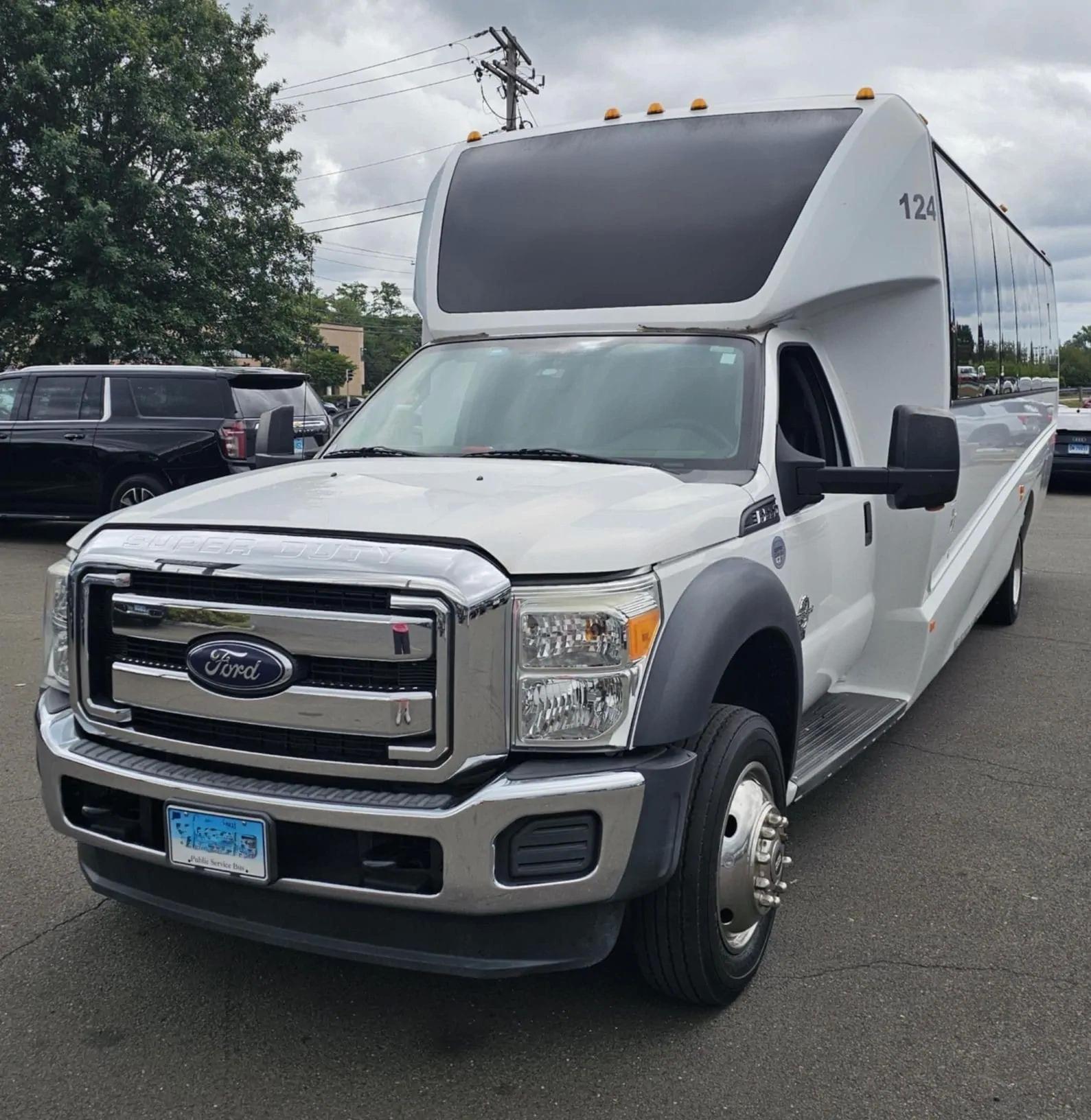 2016 GRECH F550 GM33 LIMO DIESEL WHITE / BLACK NEW DIAMOND STITCHED SEATS NEW TURBO NEW DEF NEW WATER PUMP NEW EXHAUST NEW BATTERY LIMO STYLE SEATS AND BAR ULTRA RIDE AIR SYSTEM FRAMELESS COACH WINDOWS PREMIUM SOUND SYSTEM WOOD LOOK FLOORING LED INTERIOR LIGHTING ELECTRIC PLUG DOOR AND MUCH MORE! STILL IN SERVICE DOT APPROVED WELL MAINTAINED - ONE OWNER LOCATED IN NEW HAVEN, CT