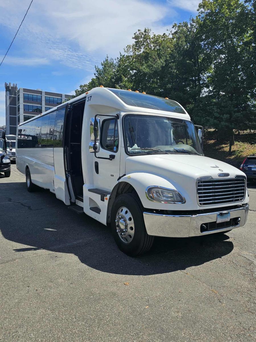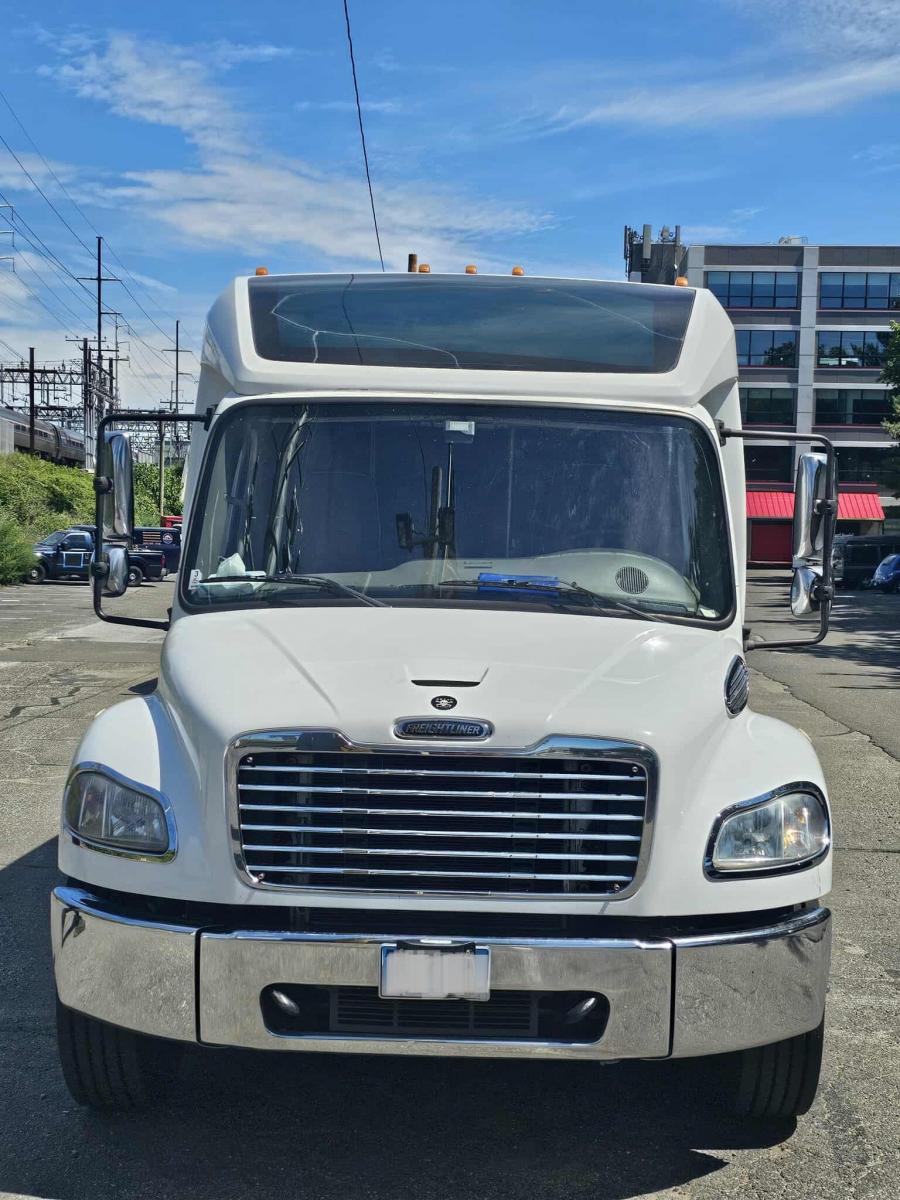 2016 GRECH GM40 DIESEL - 35 PASS PLUS DRIVER AND CO-PILOT - WHITE EXTERIOR - NEW BLACK SEATS W / BLUE PIPING AND LAP BELTS - REAR RESTROOM - USB PORTS - BACKUP CAMERA - OVERHEAD LUGGAGE / TV MONITORS - LARGE REAR LUGGAGE - GRAY WOOD LOOK FLOORING - TIRES 50% OR BETTER - DOT APPROVED - LOCATED IN NEW HAVEN, CT - STILL IN SERVICE