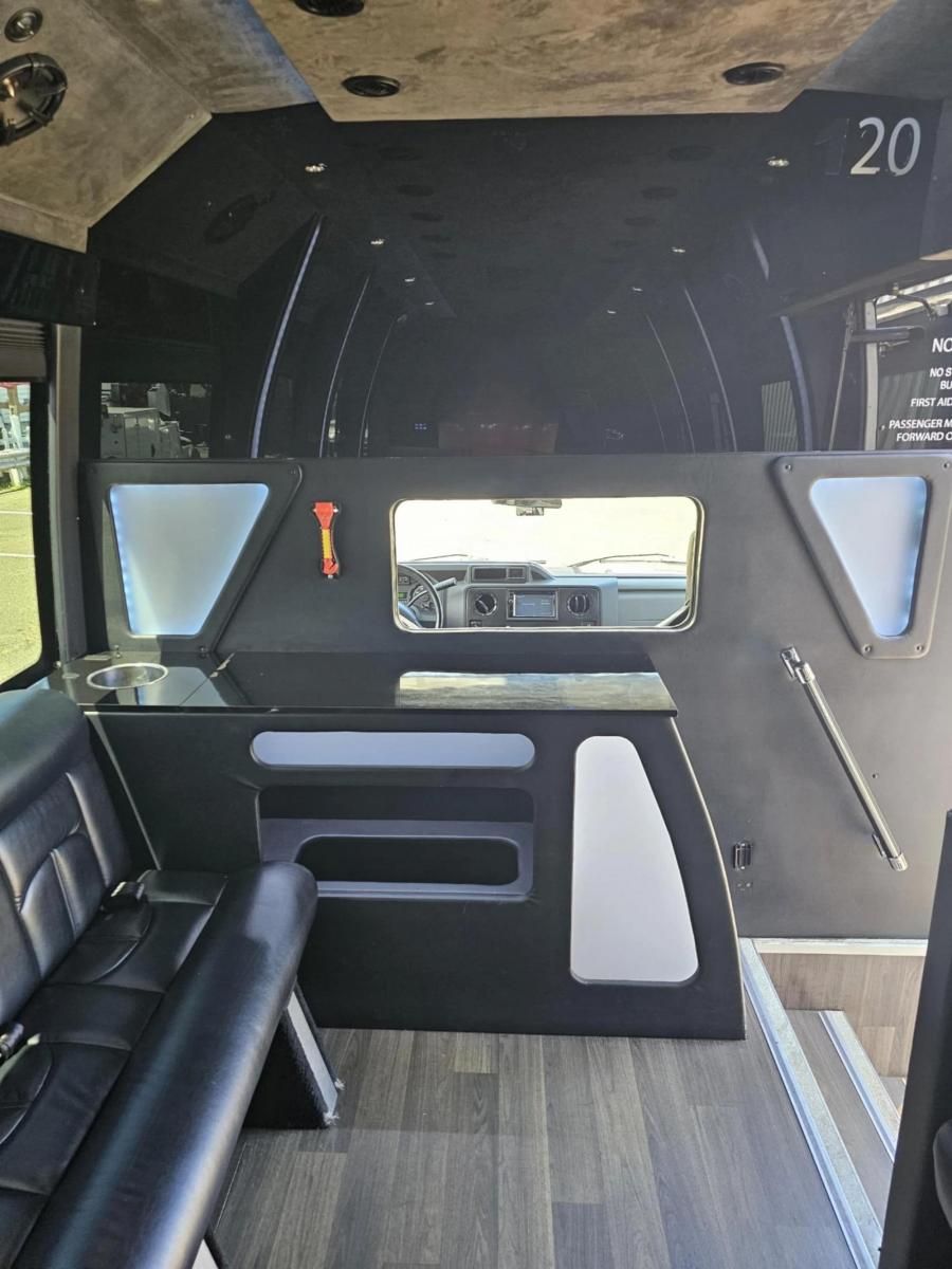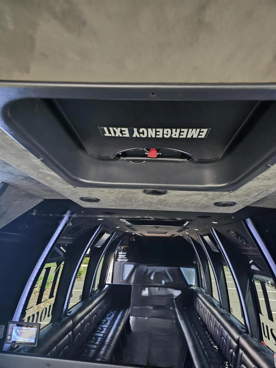 2019 FORD E450 BERKSHIRE LIMO BY BATTISTI 20 PASSENGERS V10 GAS 6.8L WHITE EXTERIOR BLACK LIMO BENCH SEATS WITH LAP BELTS USB PORTS BACKUP CAMERA TIRES 50% OR BETTER FRONT AND REAR TV' AND (2) SIDE TV MONITORS UPGRADE SOUND SYSTEM FRONT BAR WITH SELF DRAINING ICE STORAGE DUCTED ROOF A/C PLUG DOOR FLOOR, CEILING, MOOD, WHITE LIGHTS AND LIGHT SHOW REAR LUGGAGE WOOD LOOK FLOORING AND MUCH MORE! CT DOT APPROVED LOCATED IN NEW HAVEN CT STILL IN SERVICE